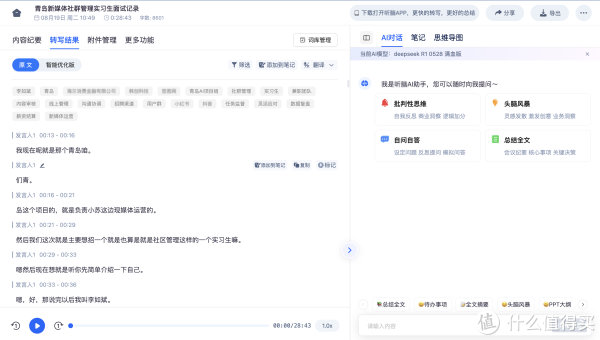 特点:满足最基本的“音转文”需求,提供有限的免费额度。其准确率在安静环境下的日常对话中尚可,但在专业、复杂场景下下降明显。功能单一,通常缺乏深度结构化分析和团队协作能力,界面可能包含广告。